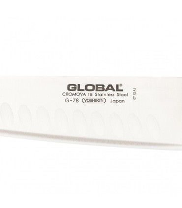 Μαχαίρι Σεφ 18 εκ. oriental με αυλακώσεις G Series by Global. Ένα μαχαίρι για όλες τις δουλειές. Κλασικό παραδοσιακό σχήμα λάμας μαχαιριού. Με την μακριά και κυρτή του λεπίδα μπορείτε να κόψετε, τεμαχίσετε, ψιλοκόψετε...