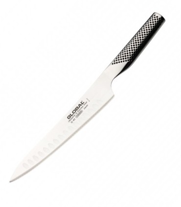 Μαχαίρι carving με αυλακώσεις 21 εκ. G Series by Global. Μαχαίρι με στενή και μακριά λεπίδα προκειμένου να κόψετε ή φιλετάρετε με απόλυτη ακρίβεια. Ενδείκνυται για Κρέας και Ψάρι.