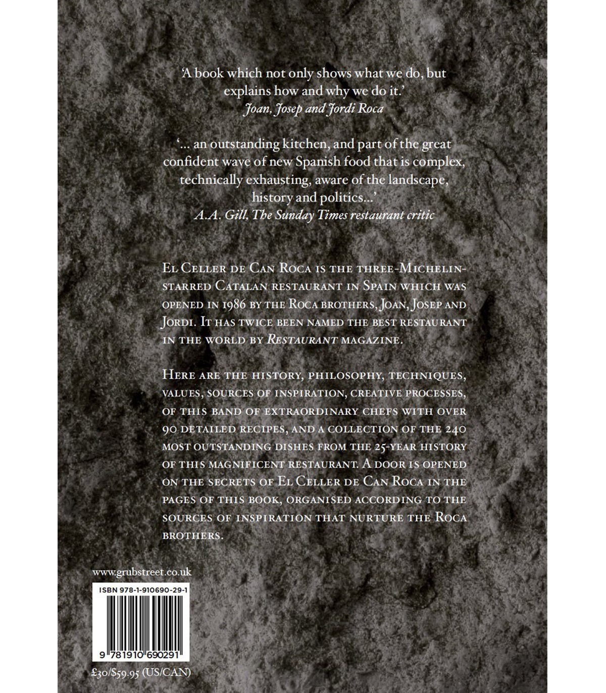 Το El Celler de Can Roca είναι το καταλανικό εστιατόριο με τρία αστέρια Michelin στην Ισπανία που άνοιξε το 1986 από τους αδελφούς Roca, Joan, Josep και Jordi. Το 2015 ανακηρύχθηκε για άλλη μια φορά το καλύτερο εστιατόριο στον κόσμο από το περιοδικό Restaurant. Ο κριτικός εστιατορίου Times A.A. Ο Gill συνέκρινε το εστιατόριο με το πρώην εστιατόριο El Bulli, το οποίο κάποτε κατατάχθηκε ως το νούμερο ένα εστιατόριο στον κόσμο, λέγοντας ότι ήταν μια «εξαιρετική κουζίνα και μέρος του μεγάλου κύματος νέας ισπανικής κουζίνας που είναι περίπλοκο, τεχνικά εξαντλητικό. γνωρίζει το τοπίο, την ιστορία και την πολιτική. Η πρώτη έκδοση του El Celler de Can Roca The Book κυκλοφόρησε στα ισπανικά σε γιγάντια μορφή που ζυγίζει απίστευτα 5 κιλά. Αυτή η νέα, μικρότερη έκδοση εμφανίζεται για πρώτη φορά στα αγγλικά.