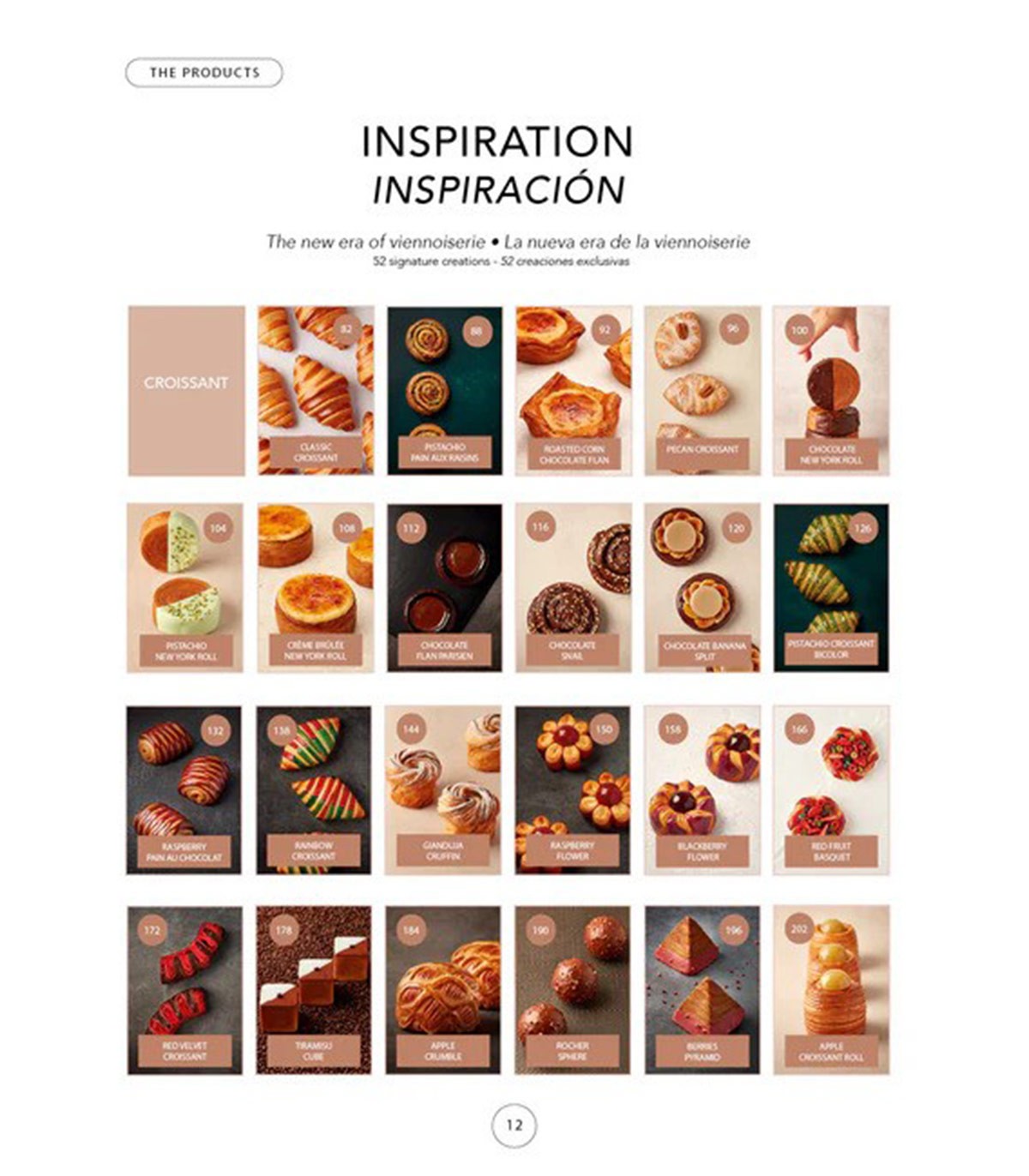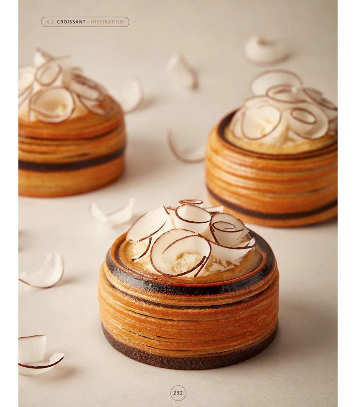Για να τροφοδοτήσετε τη δημιουργικότητά σας, η ενότητα Έμπνευση για Κρουασάν παρουσιάζει τις κλασικές δημιουργίες Croissant (και επιπλέον 42 signature συνταγές). Μοναδικές προσεγγίσεις στην πλαστικοποίηση προσαρμοσμένες σε διαφορετικές υφές και αισθητικές, μοναδικές γεμίσεις και οπτικά εκπληκτικές διακοσμήσεις, που ωθούν τα όρια της παράδοσης. Όλες οι συνταγές είναι δοκιμασμένες αυστηρά στα εργαστήρια ζαχαροπλαστικής μας και τελειοποιημένες μέσα από χρόνια πρακτικής εμπειρίας σε επαγγελματικά μαθήματα - εξασφαλίζοντας αξιοπιστία και συνέπεια για κάθε επίπεδο παραγωγής, έτοιμες να ζωντανέψουν στην κουζίνα σας.